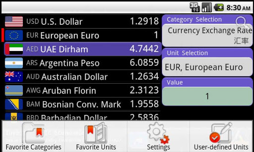 برنامج تحويل الطول والوزن والكمية، بالإضافة إلى أسعار تحويل العملة.